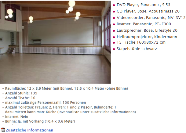 | 1 | Reservation auf eine bestimmte Zeit; ansonsten nur ganztägige Reservation an einem bestimmten Datum möglich. Bei Geräten und Mobiliar sowie Tickets/Abo's wird die Option «ganztägiges Ereignis» nur vorgeschlagen. |